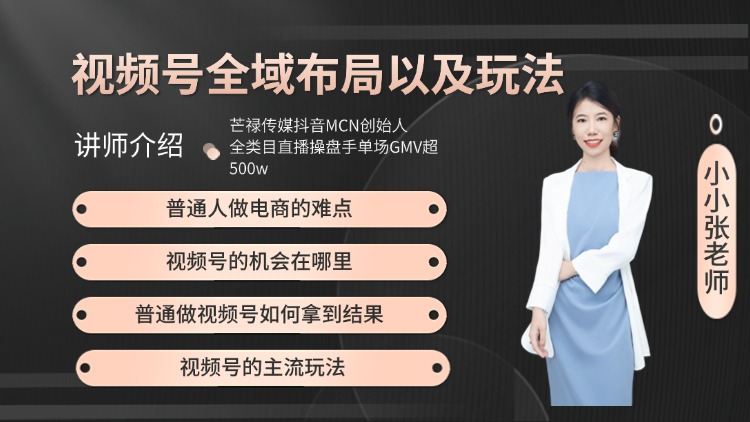 1.普通人做电商的难点 2.视频号的机会在哪里 3.普通做视频号如何拿到结果 4.视频号的主流玩法 5.如何合作