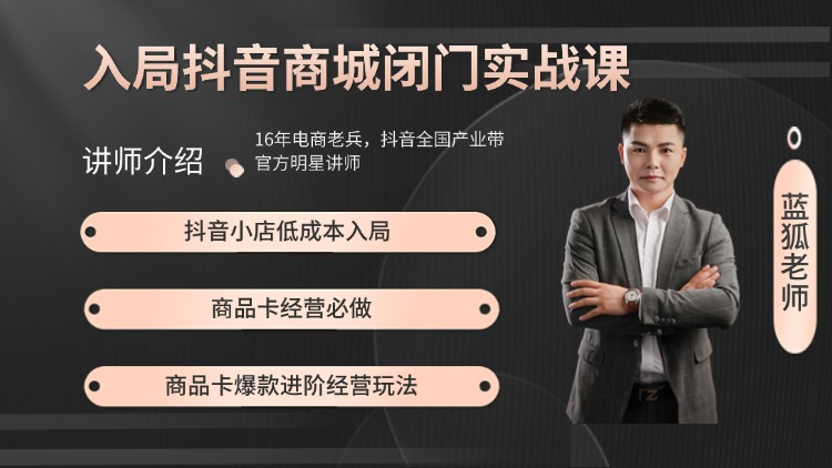 课题:入局抖音商城闭门实战课 收益点: 1、抖音小店低成本入局 2、商品卡经营必做 3、商品卡爆款进阶经营玩法