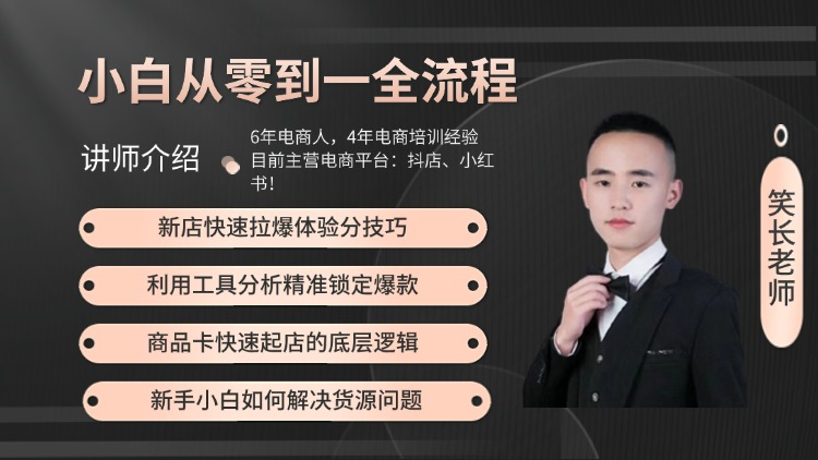 1、新店快速拉爆体验分技巧 2、利用工具分析精准锁定爆款 3、商品卡快速起店的底层逻辑 4、新手小白如何解决货源问题